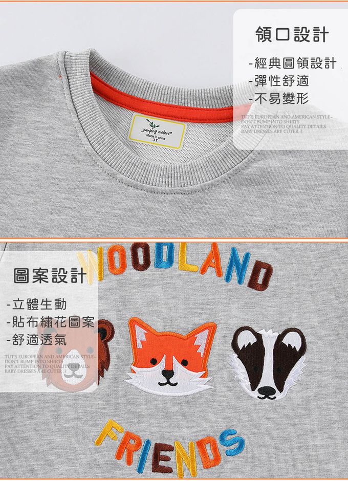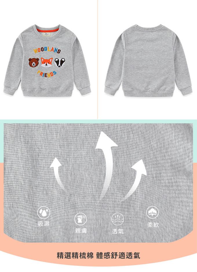 圓領棉質長袖上衣/大學T-森林好友-灰色