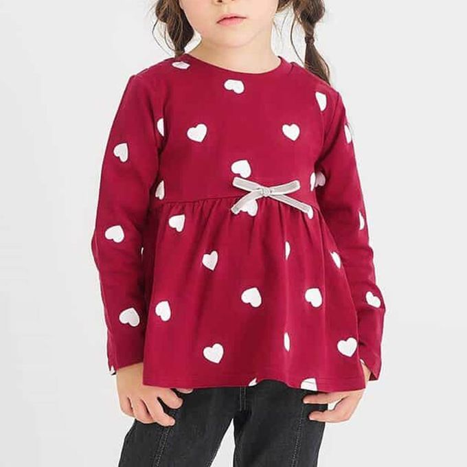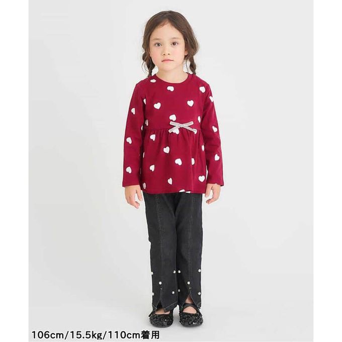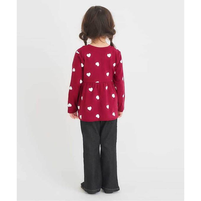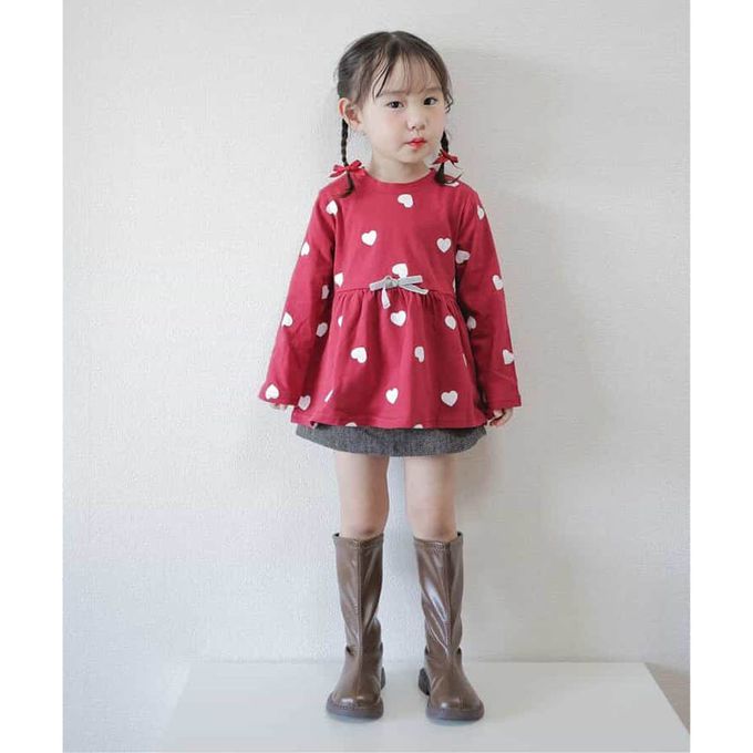 日本 apres les cours - 天天穿飄逸荷葉邊長袖上衣-愛心-紅
