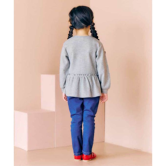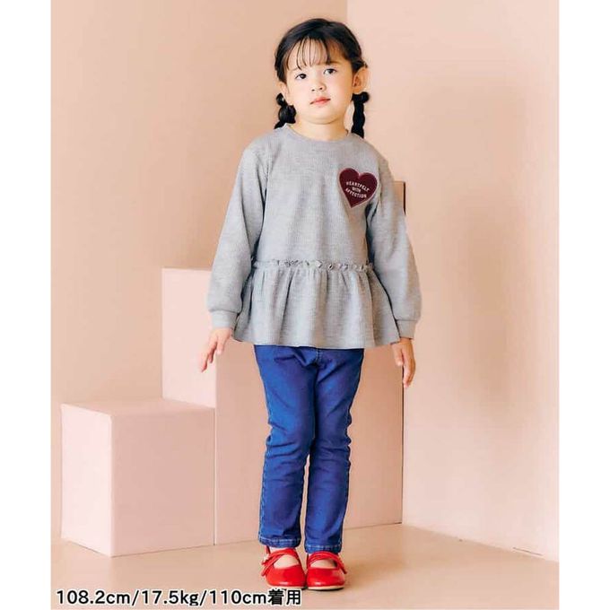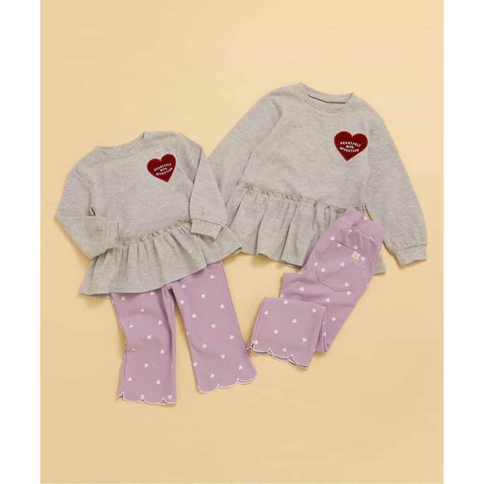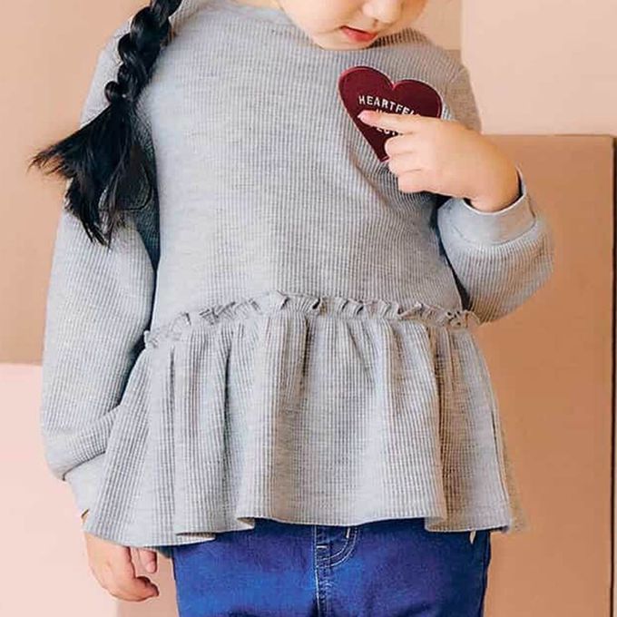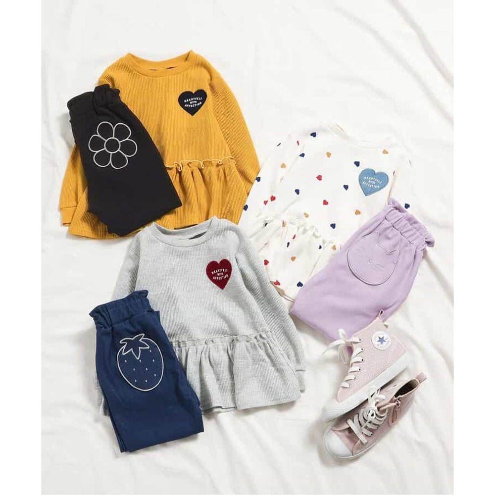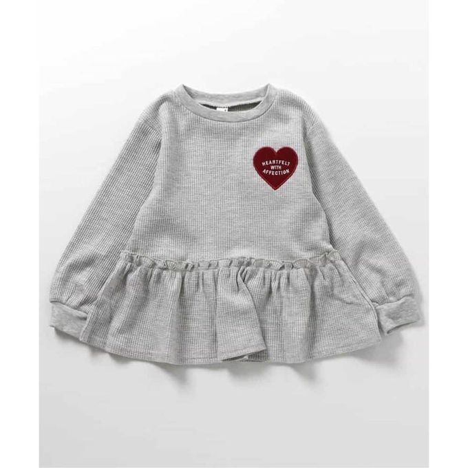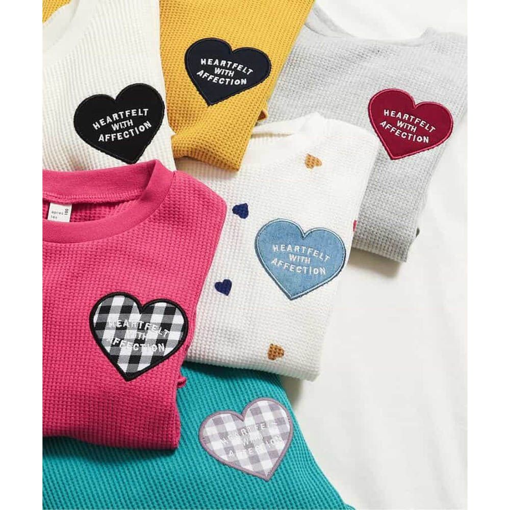 日本 apres les cours - 華夫格愛心貼布長袖上衣-灰