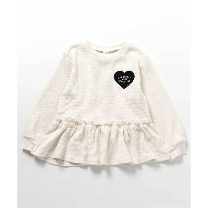 日本 apres les cours - 華夫格愛心貼布長袖上衣-素面-白