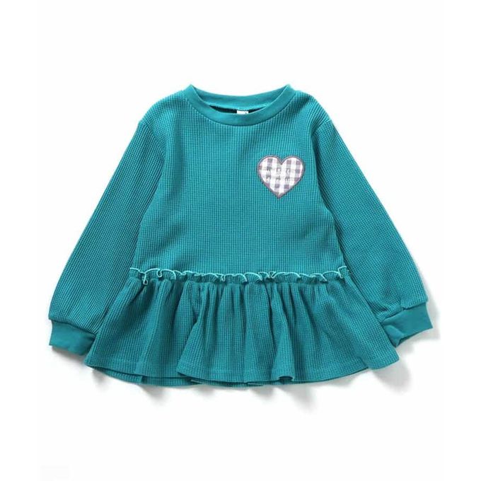 日本 apres les cours - 華夫格愛心貼布長袖上衣-薄荷綠
