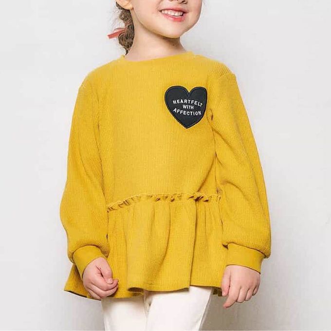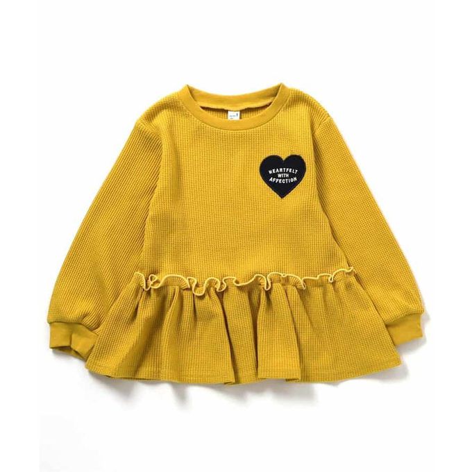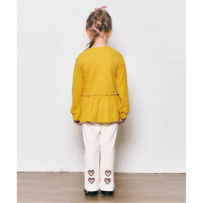 日本 apres les cours - 華夫格愛心貼布長袖上衣-芥黃