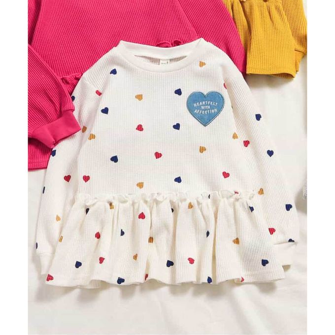 日本 apres les cours - 華夫格愛心貼布長袖上衣-彩色愛心-白