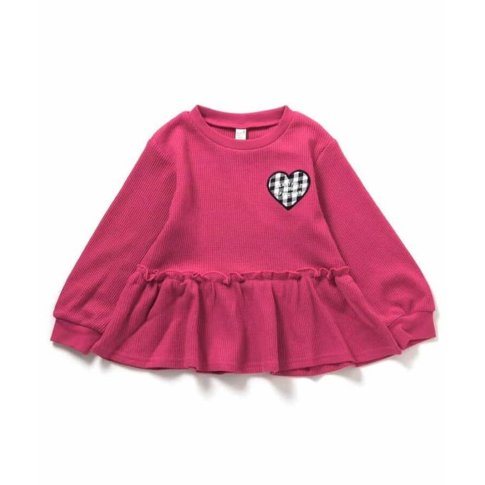 日本 apres les cours - 華夫格愛心貼布長袖上衣-莓粉