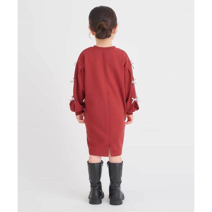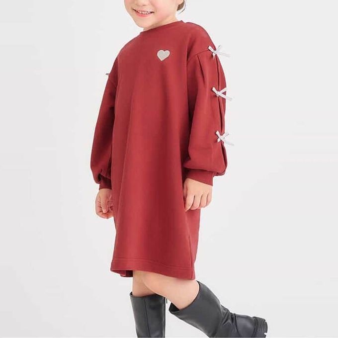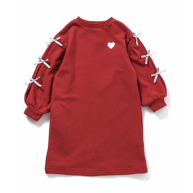 日本 apres les cours - 蝴蝶結綁帶刺繡愛心長袖洋裝-紅