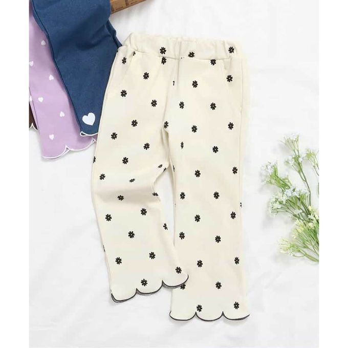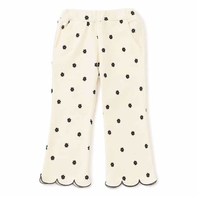 日本 apres les cours - 絕美花瓣刺繡直筒長褲-滿版小花-象牙白