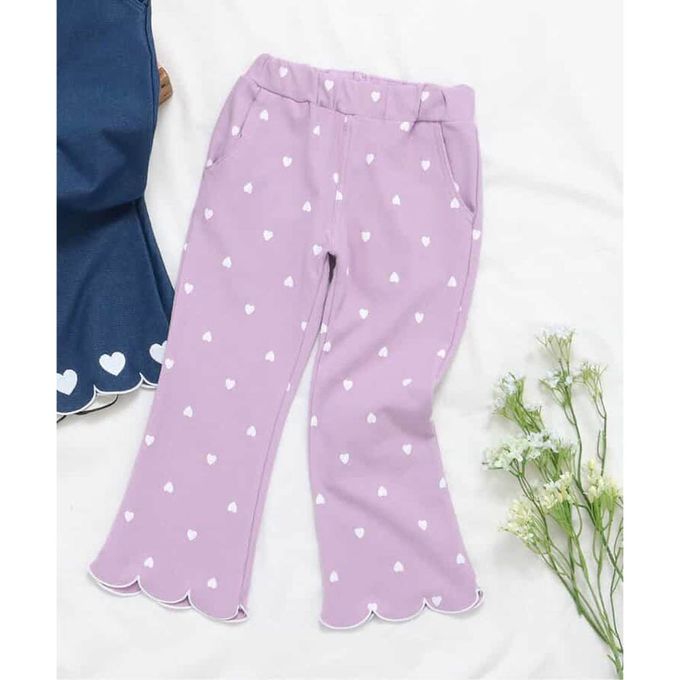 日本 apres les cours - 絕美花瓣刺繡直筒長褲-滿版愛心-薰衣草紫