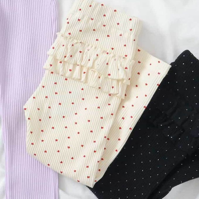 日本 apres les cours - 可愛荷葉屁屁羅紋長褲-愛心-象牙白