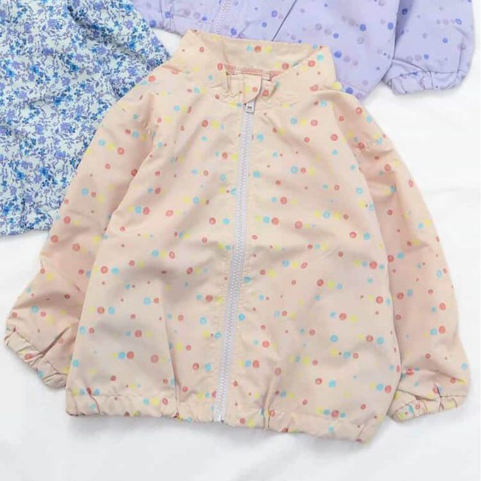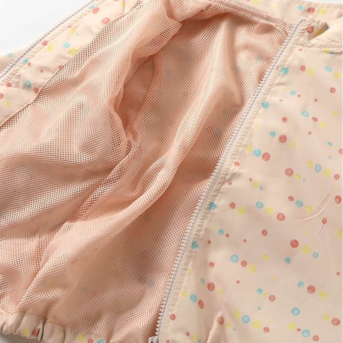 日本 apres les cours - 防潑水 輕量網紗風衣外套-彩色點點-粉杏
