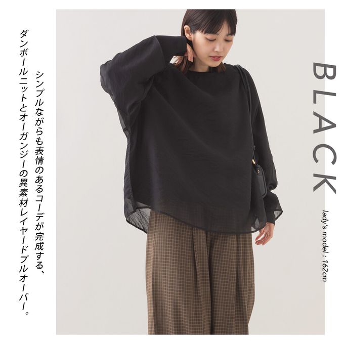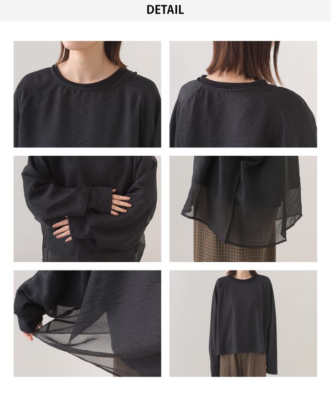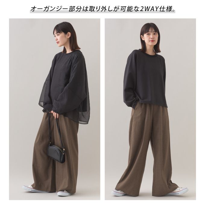 異材質層次穿搭,展現不同風格的 2WAY套頭上衣。