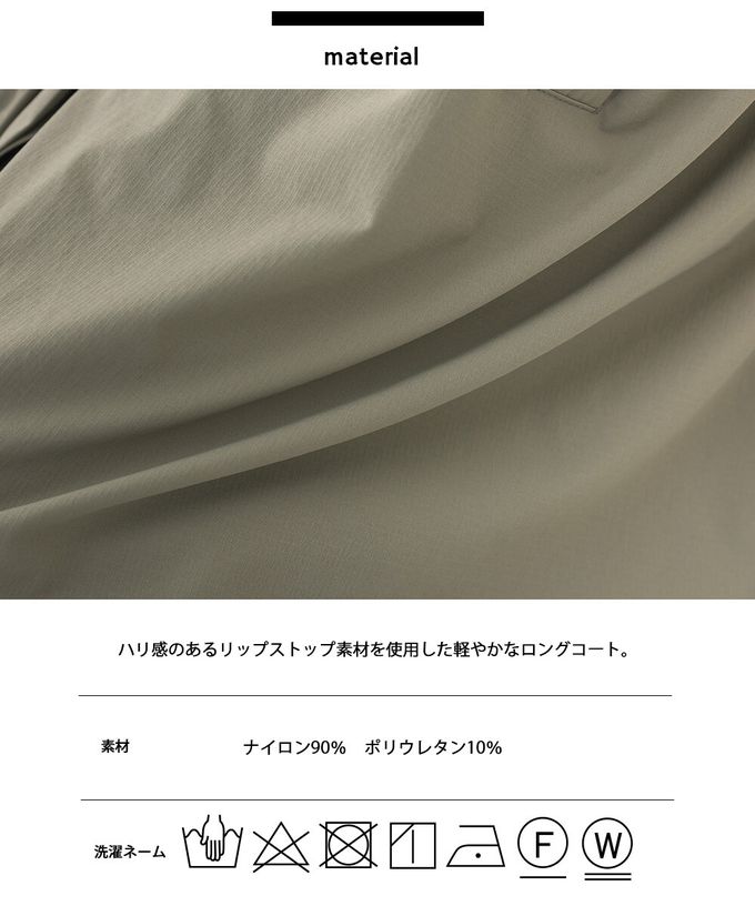 採用帶有挺度的 Ripstop 防撕裂布料 製成的輕盈長版大衣。