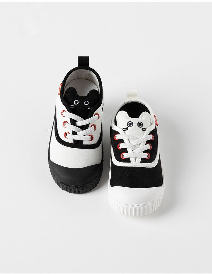 韓國 OZKIZ - 腳趾保護防滑懶人休閒鞋-貓咪-黑底