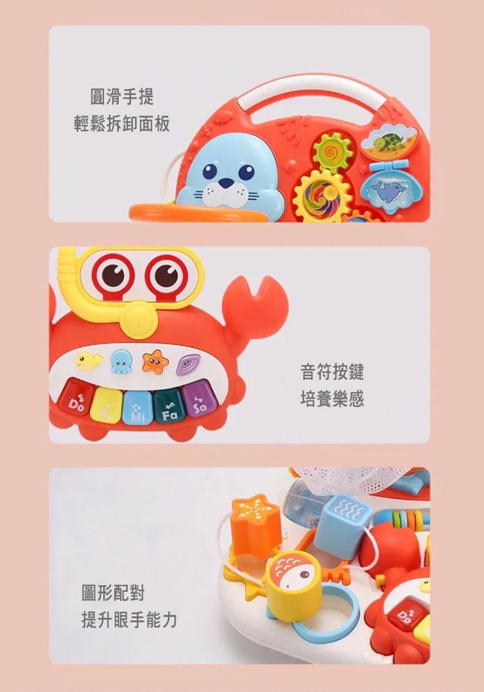 注意事項:適用年齡:12個月以上 主要材質:塑膠(PP、ABS) 商品淨重:約 1928g 產品尺寸:《學步車》約44x47x47cm;《學習桌》約37x33x24cm 產地:中國 商品檢驗標識號:M45656 【注意事項】 ● 包裝需成人拆開。 ● 請在成年人監護下使用本產品。 ● 本產品凡使用過恕不接受退換貨。 ● 勿長時間置於陽光下曝曬或靠近火源。 ● 每次使用前請檢查有無破損,如有請勿再使用。 ● 電池按正負極指示正確放入,已耗盡的電池務必取出以免漏電。 ● 非充電電池不可充電,非同類電池或新舊電池不可以混著使用。