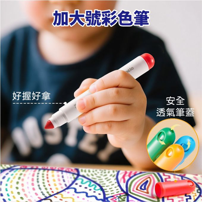 加大號筆桿設計,好握不滑手,搭配安全透氣筆蓋,讓孩子能安心創作,爸媽也能無憂收拾。
