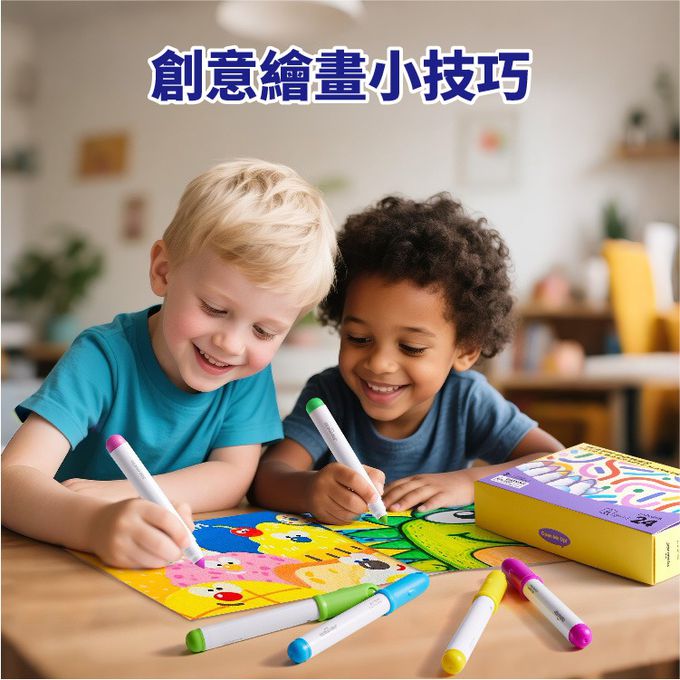 色彩多達24色,激發孩子的想像力與創造力,適合學齡前後的美術啟蒙與塗鴉創作。
