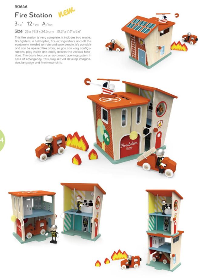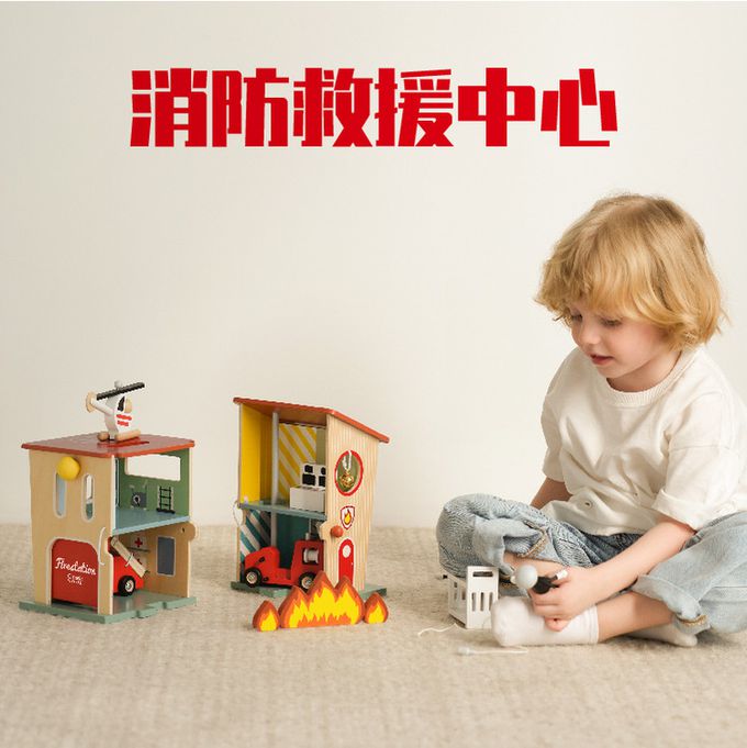 消防救援中心是一款結合角色扮演與動手操作的經典木製玩具。完整的消防情境設計,包含消防局、消防車、消防員、直升機及滅火道具,讓孩子能模擬真實救援過程。消防局大樓具備多種互動機關,像是自動升降門、直升滑桿、以及屋頂停機坪,讓孩子在遊戲中體驗緊急出動的刺激感。搭配木質火焰與配件,孩子可自由佈置火災現場,進行滅火與救援的冒險遊戲。此玩具不僅能激發孩子的想像力與創造力,還能促進語言表達、角色扮演能力及精細動作發展,是學齡前兒童最佳的教育與娛樂結合玩具。
