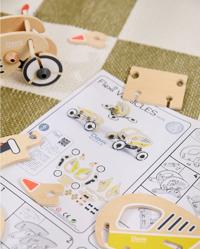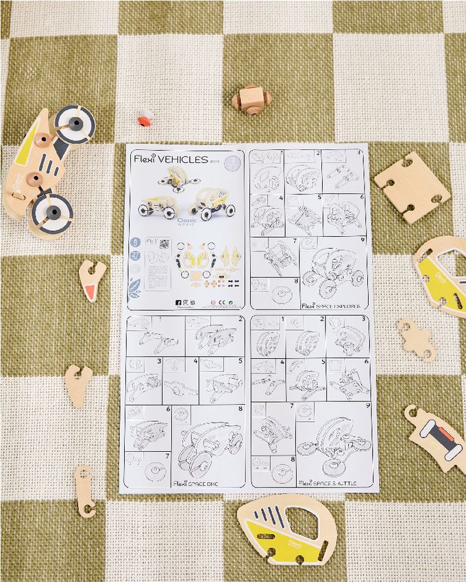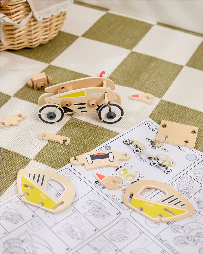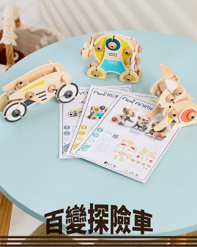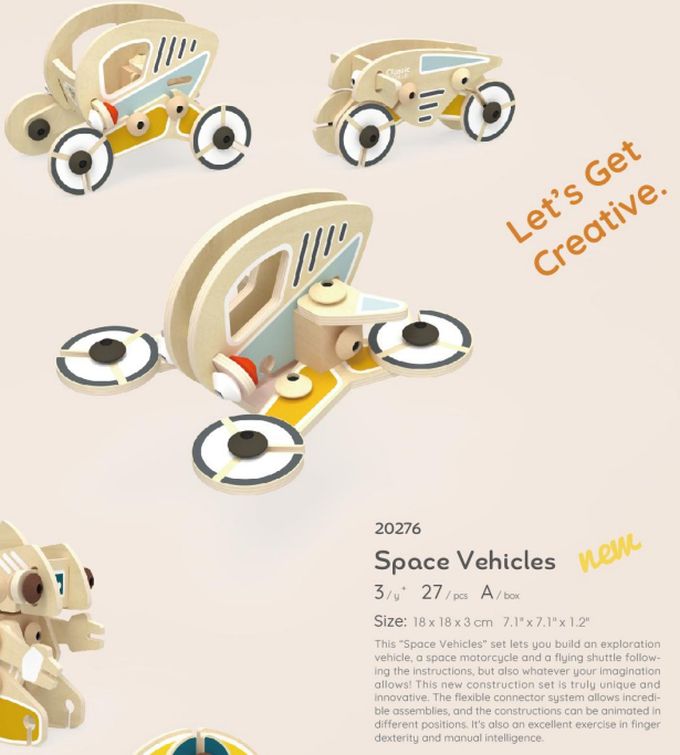 【百變探險車】是孩子們開啟創意冒險的最佳良伴!本組合內含 27 個零件,能組裝出三款不同造型:探險車、太空摩托車以及飛行穿梭機。透過靈活的連接系統,孩子能輕鬆拆裝與組合,體驗無限的創造樂趣。除了依照說明書完成造型,更能發揮想像力自由創作,打造專屬的太空探險工具。木質零件圓潤堅固,搭配精緻的彩色設計,安全又吸睛。遊戲過程中,不僅能提升手眼協調與手部靈巧度,更能激發專注力與邏輯思考能力。讓孩子在玩樂中探索太空世界,培養創造力與解決問題的能力,享受動手做的成就感!