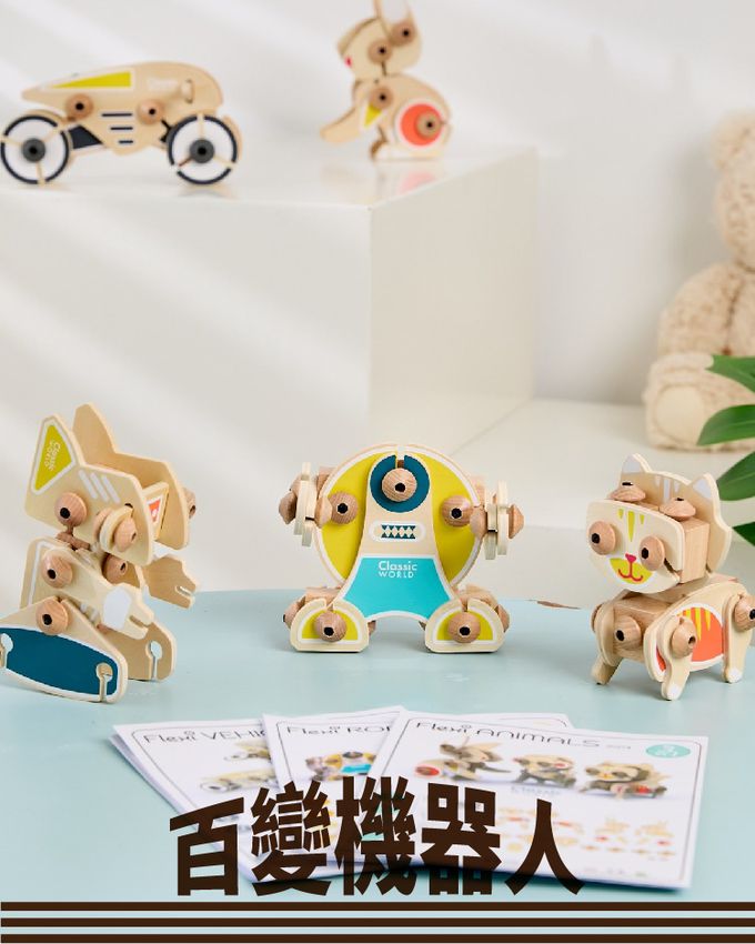 【百變機器人】組合以靈活的連接系統設計,讓孩子能輕鬆組裝出三款不同造型的機器人: