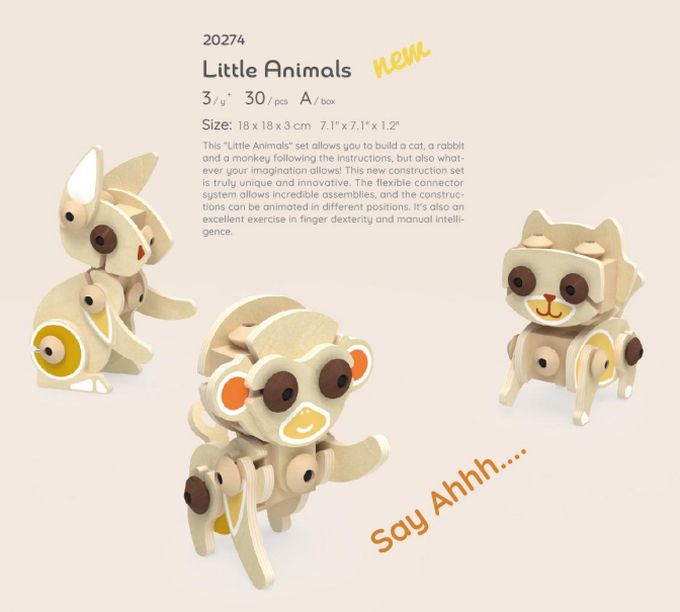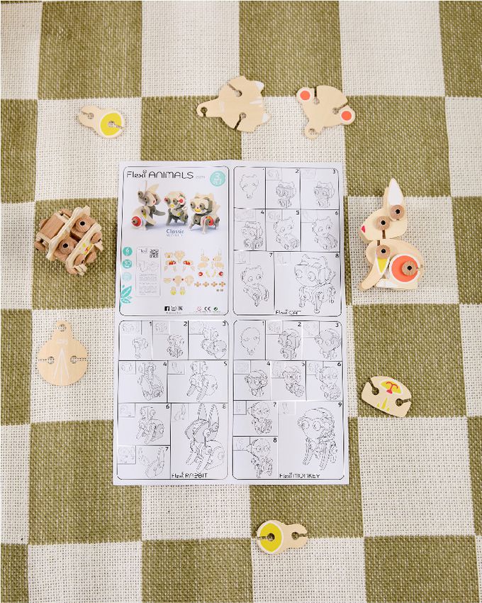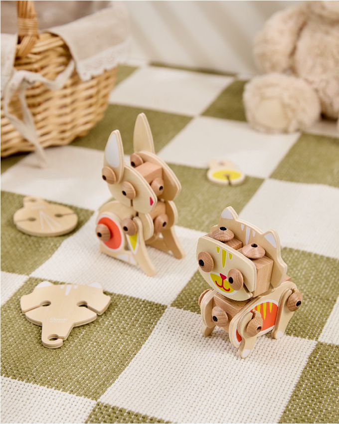 百變小動物是一款充滿創意的3合1拼裝玩具,內含30個零件,可依照說明書組裝成貓咪、兔子或猴子,還能隨心發揮想像力,創造出屬於孩子的獨特小動物。特殊的柔性連接設計,讓每個造型都能靈活擺動,帶來更多互動樂趣。不僅能培養孩子的手眼協調與手指靈活度,更能啟發邏輯思考與創造力。選用安全環保木材與無毒塗料製作,手感溫潤、色彩柔和,適合6歲以上孩童反覆組裝與玩樂。這款兼具教育性與趣味性的木質建構玩具,讓孩子在遊戲中培養專注力與解決問題的能力,是寓教於樂的最佳選擇。