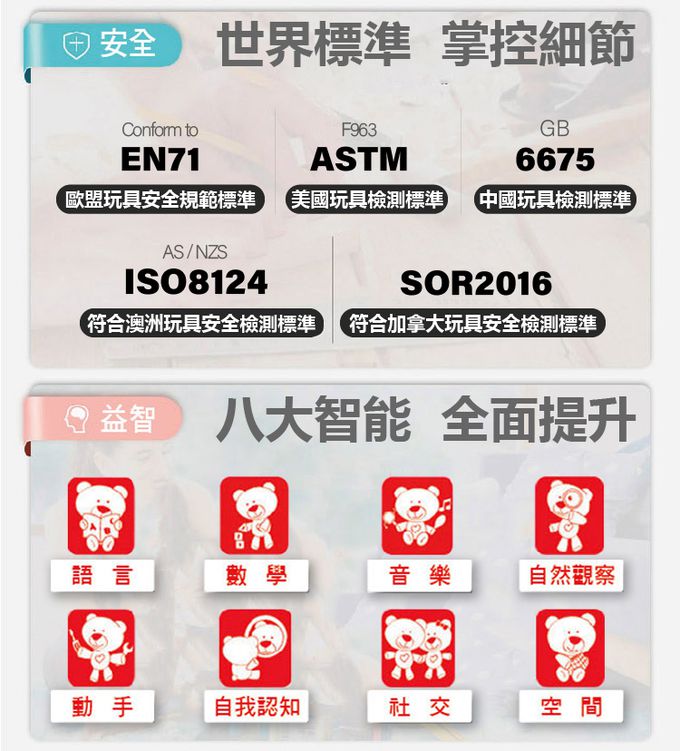 注意事項:1.本產品須由成人監護下拆除包裝使用。 2.本體及其他配件拆除之包裝應即丟棄。 3.本體及其他配件不可讓兒童誤食並遠離火源。