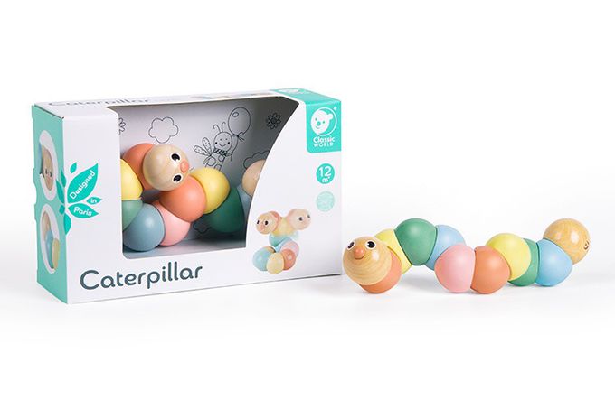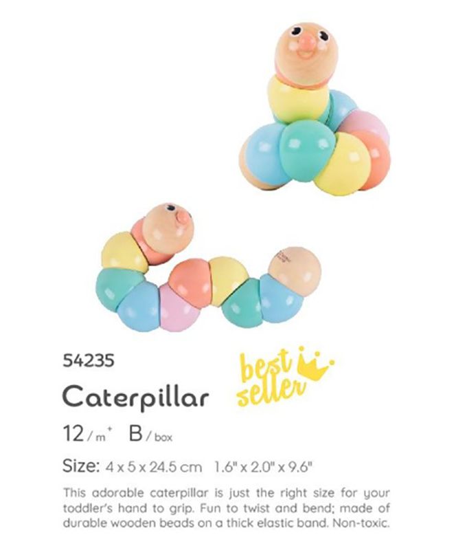 專為幼兒設計,繽紛木製可愛毛毛蟲