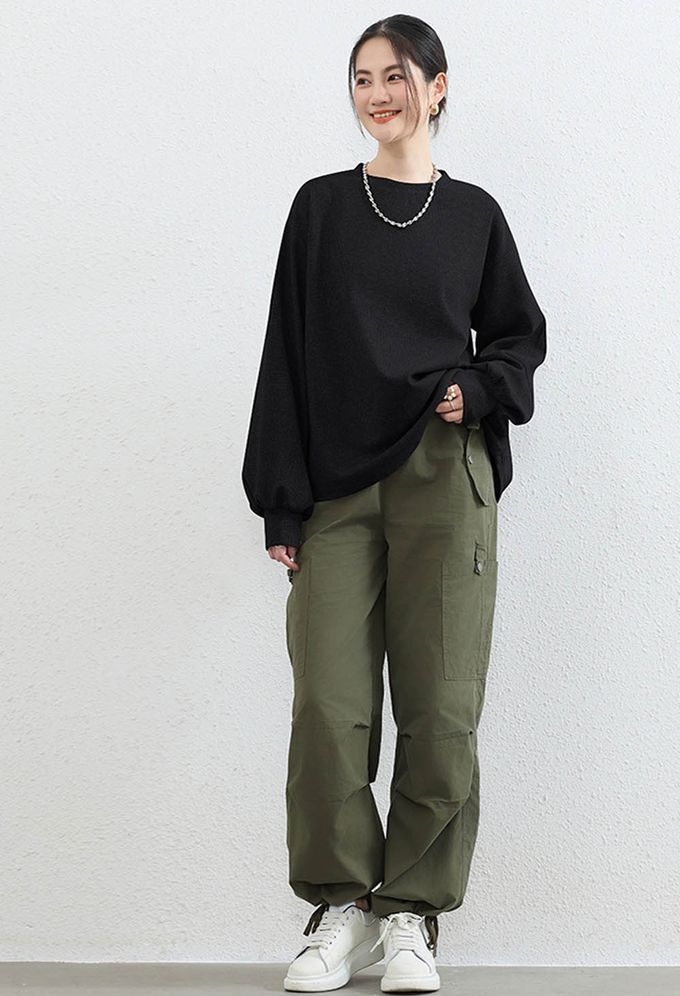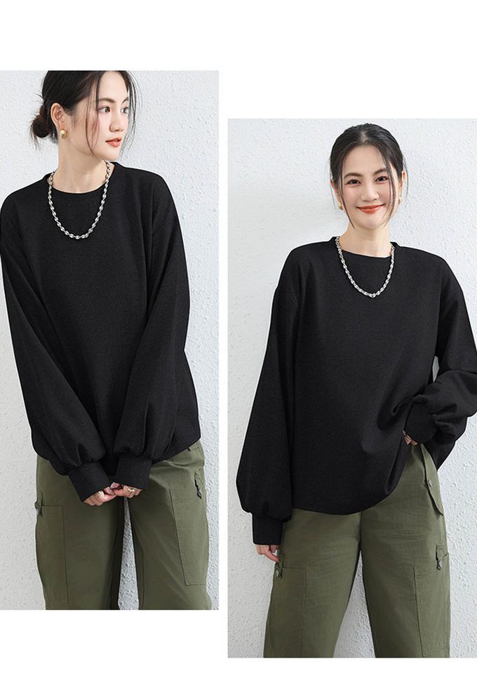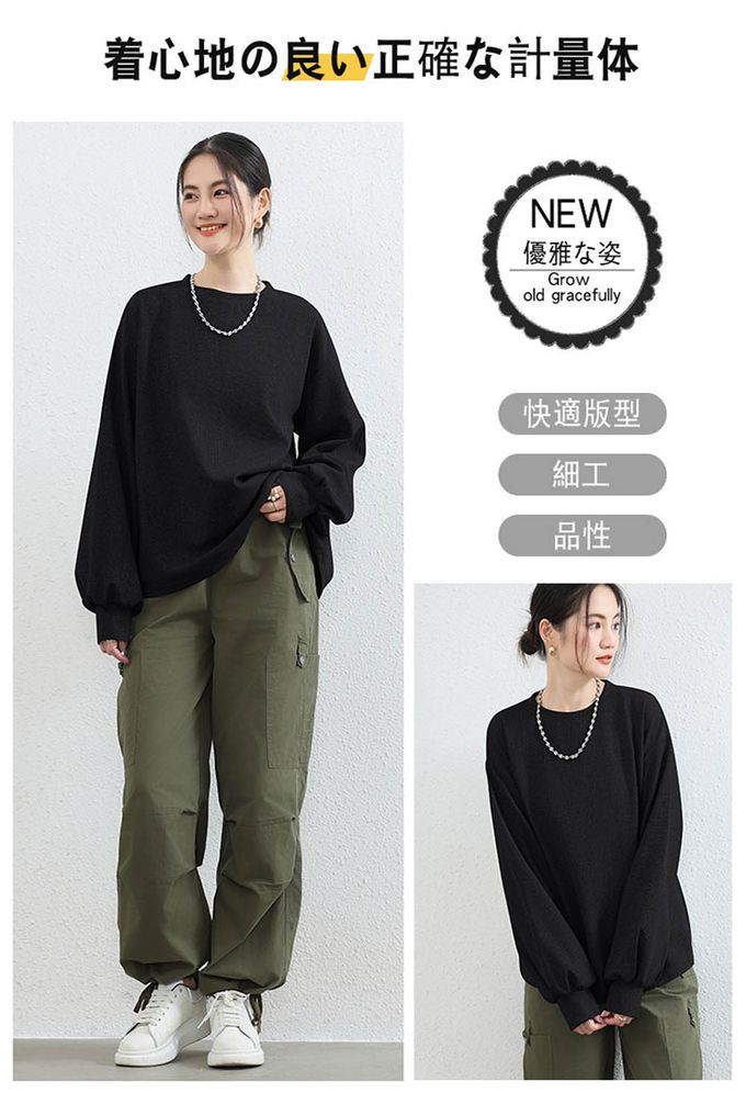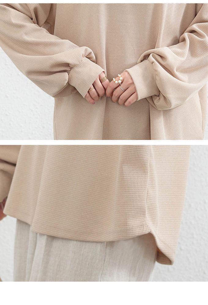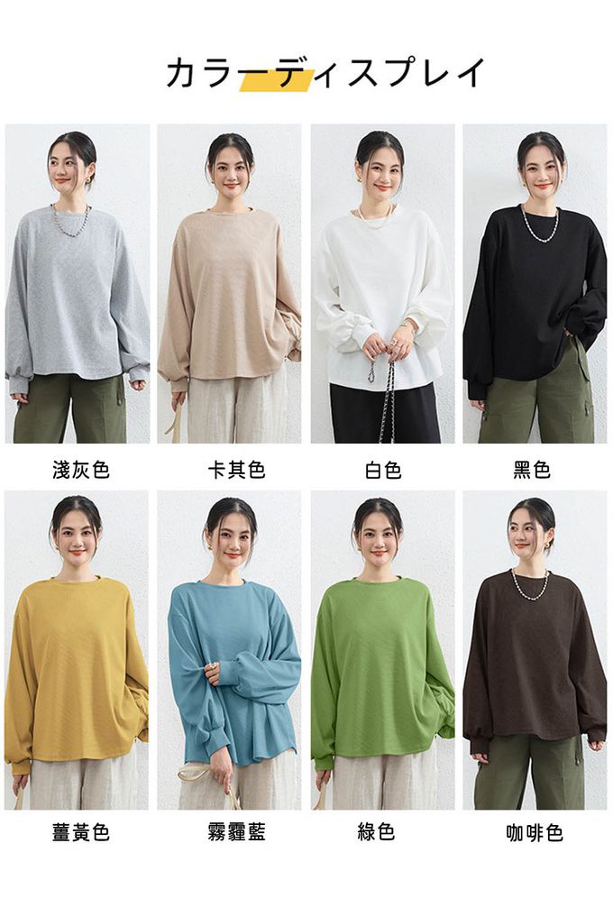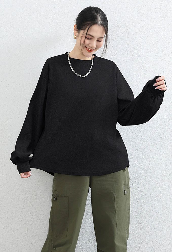 華夫格百搭澎澎長袖上衣-黑色 (F)