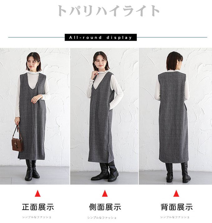 品名:毛呢感V領背心裙