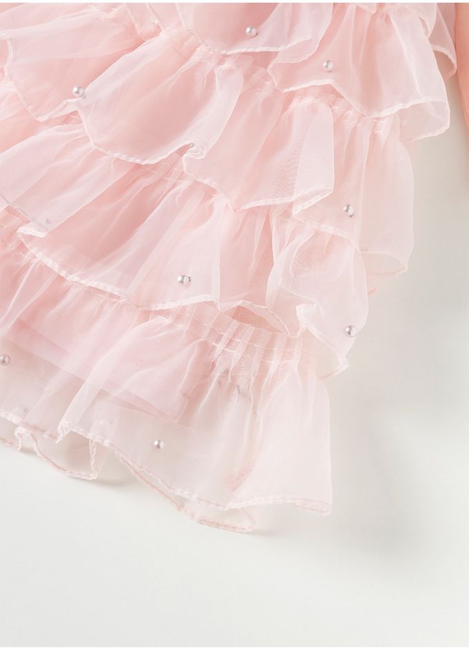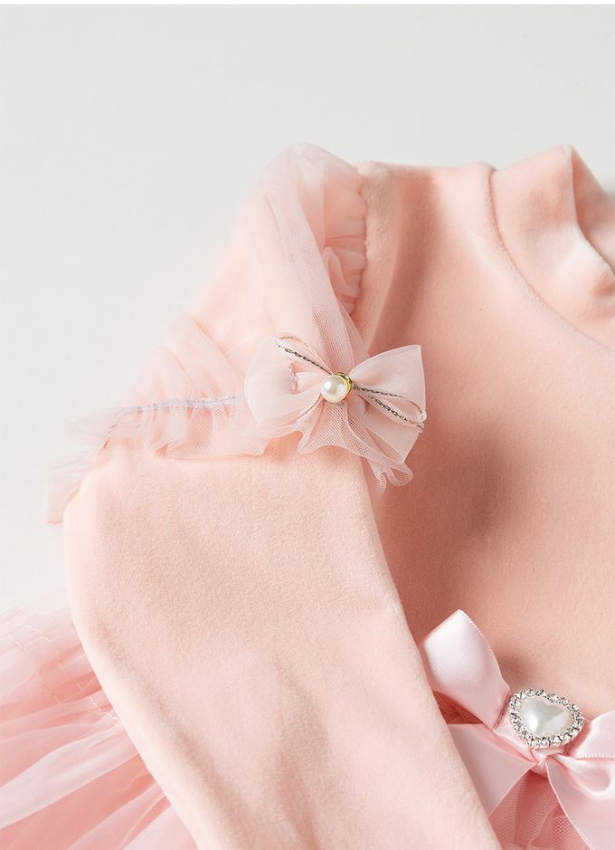 兩側袖口點綴珍珠蝴蝶結,增添亮眼細節