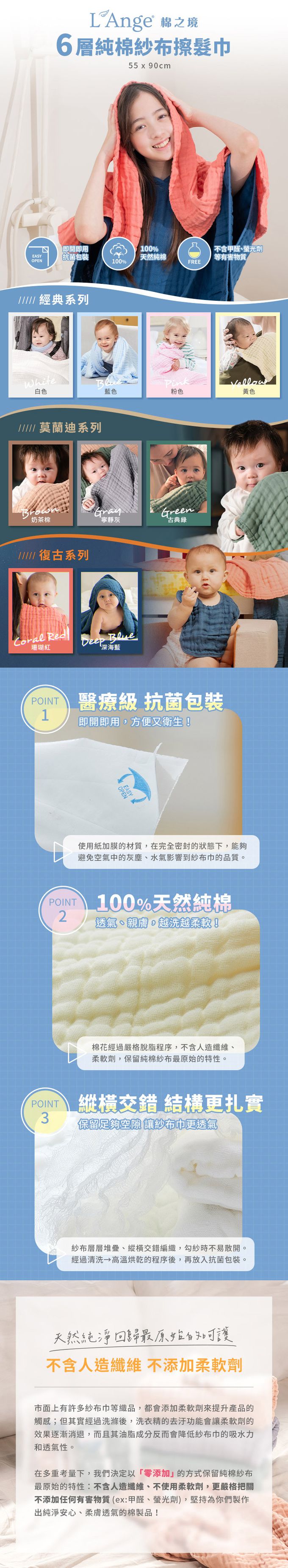 |L'Ange 棉之境 6層純棉紗布擦髮巾|