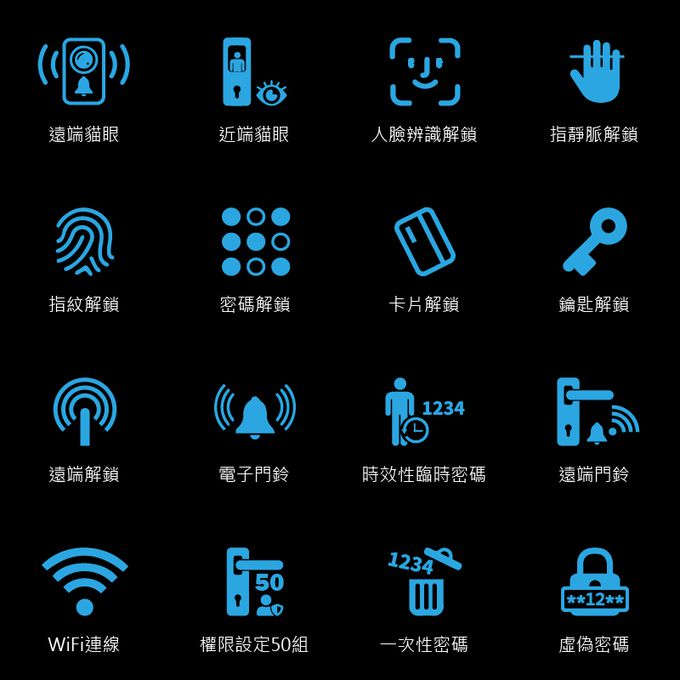 遠近端貓眼|人臉|掌靜脈|指紋|卡片|密碼|鑰匙|遠端|門鈴|多功能時效密碼 十合一電子鎖