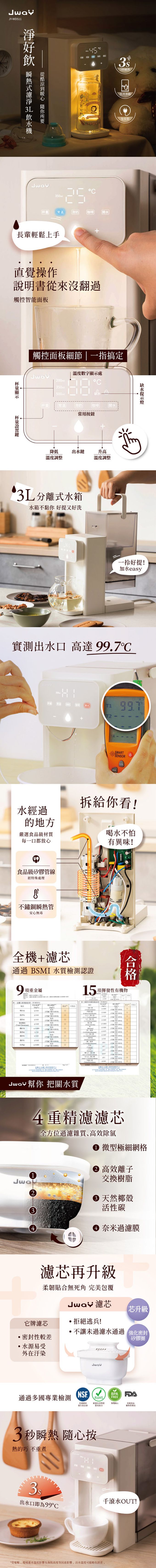 品名:淨好飲|瞬熱式濾淨3L飲水機 JY-WD511