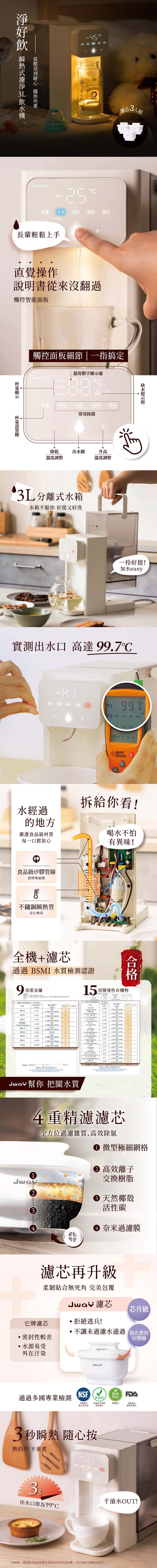 品名:淨好飲|瞬熱式濾淨3L飲水機JY-WD511 (加3入濾心)
