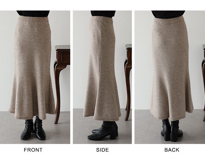 以魚尾剪裁,搭配絲線與亮片的針織材質,增添時尚感。