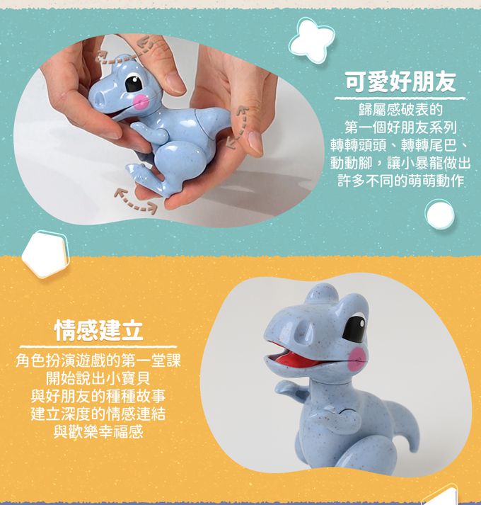 。轉轉頭頭、轉轉腳腳,動動尾巴,讓小暴龍做出許多不同的萌萌動作