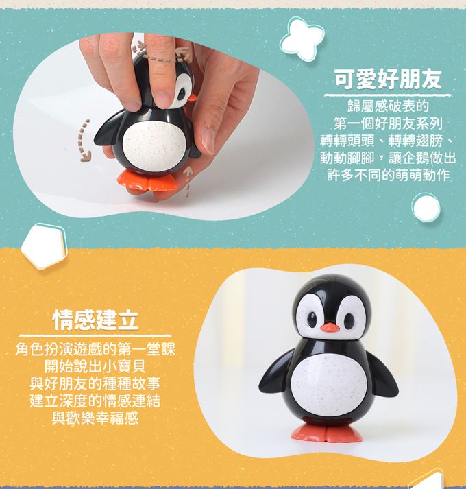。轉轉頭頭、轉轉翅膀、動動腳腳,讓企鵝做出許多不同的萌萌動作