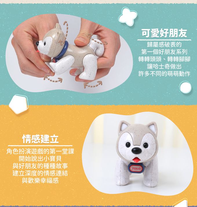 。轉轉頭頭、轉轉腳腳,讓哈士奇做出許多不同的萌萌動作