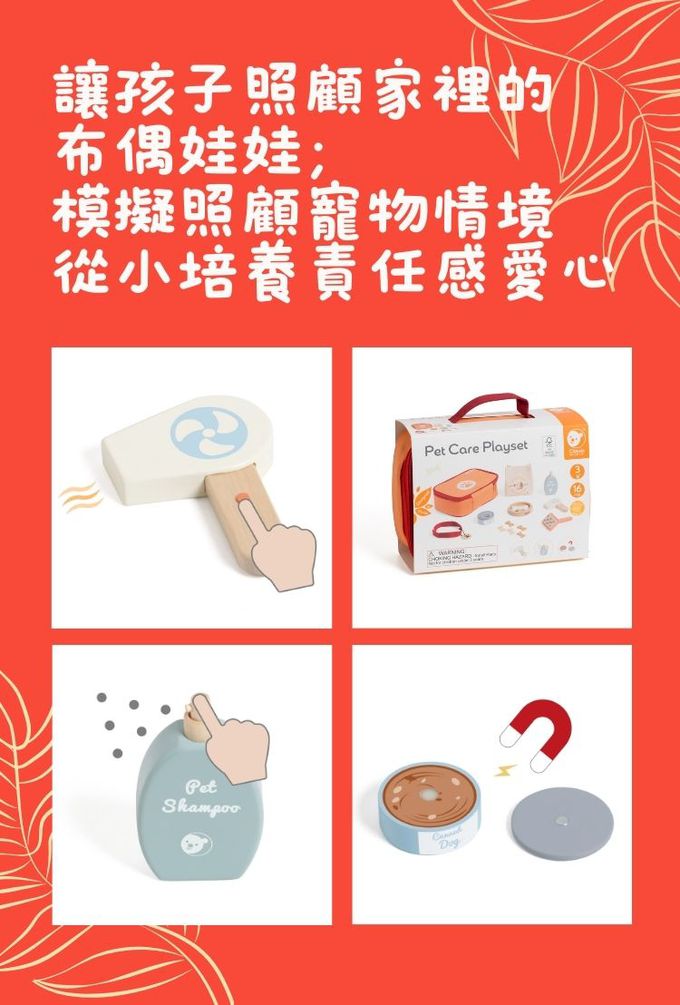愛心寵物照護組是一款專為小朋友設計的益智玩具組,內含寵物食品、碗、梳子、吹風機、剪刀、項圈及便攜收納包。透過模擬照顧寵物的情境,小朋友可以學習到如何關心和照顧他們的小夥伴,培養責任感及愛心。此套裝不僅能提高孩子的想像力和創造力,還能促進手眼協調及精細動作發展。家長可以陪伴孩子一起玩耍,增進親子互動,同時也能教導孩子基本的寵物照護知識,為未來養寵物做好準備。