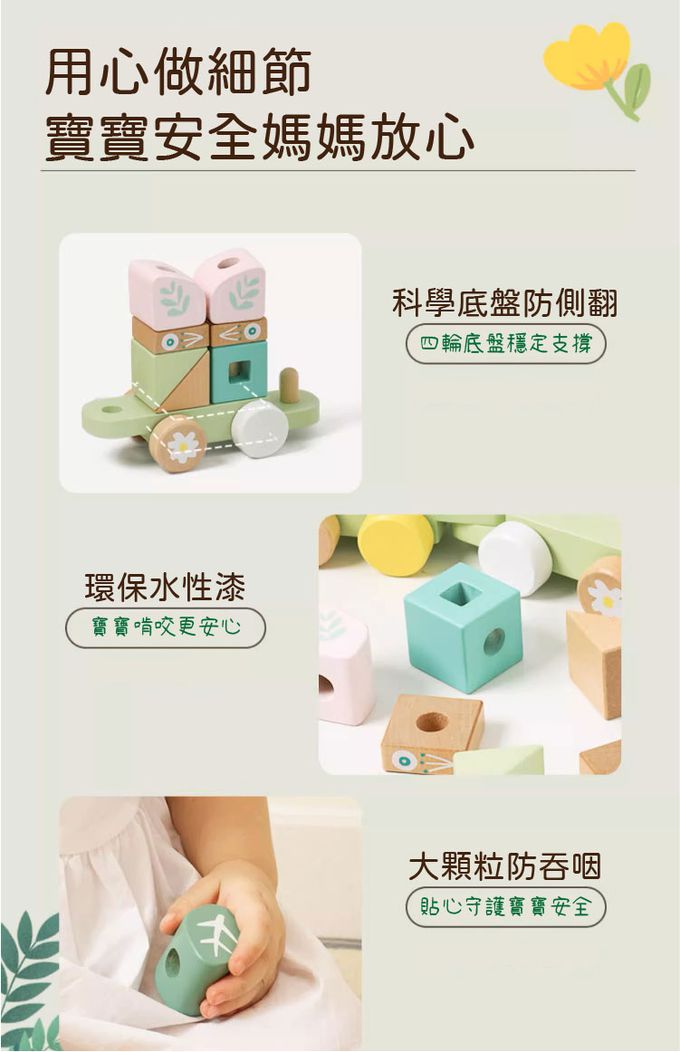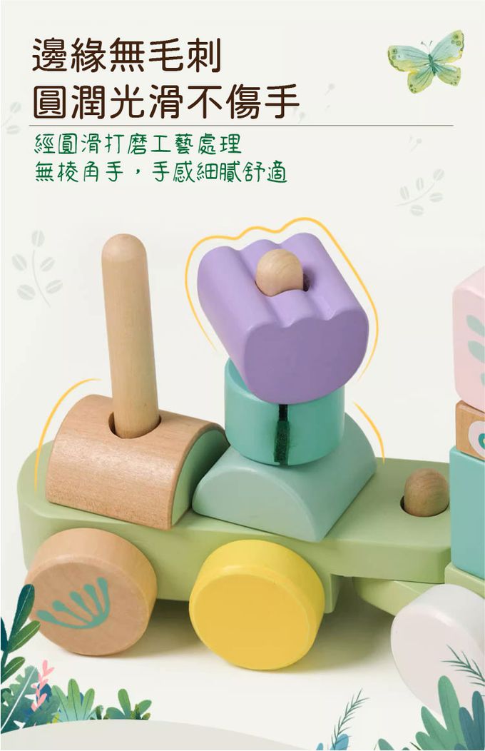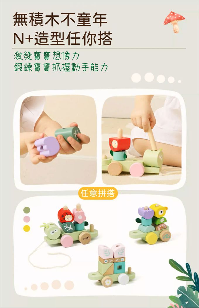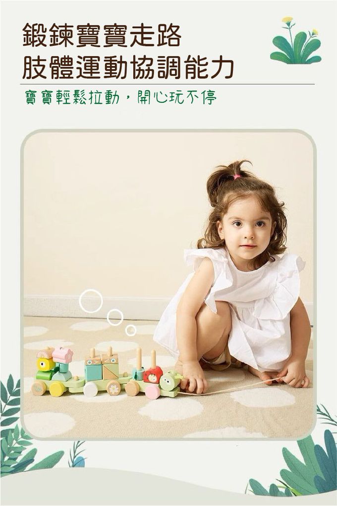 叢林手拉積木火車是專為12個月以上幼兒設計的創意積木玩具。它以鮮豔的馬卡龍色系和可愛的叢林動物造型吸引寶寶的注意力,激發寶寶的想像力與創造力。這款積木火車不僅可以作為拼搭玩具,還具有拖拉功能,便於攜帶,增加遊戲的樂趣。每一個積木都經過細緻的圓潤打磨處理,邊緣光滑不傷手,使用環保的水性漆,讓寶寶玩得更安全、家長更放心。此外,積木大小適中,避免誤吞風險,是寶寶成長過程中不可或缺的安全益智玩具。