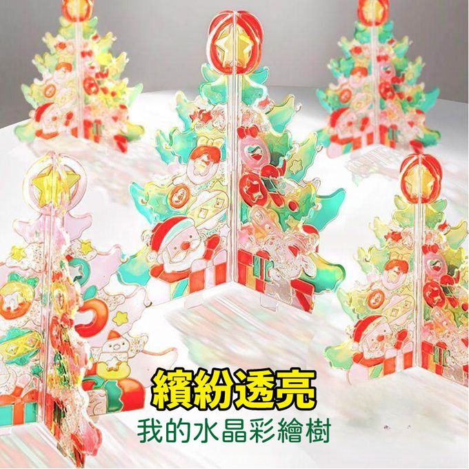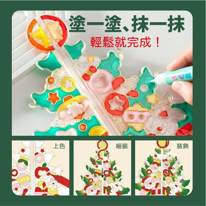 內含彩繪膠筆、聖誕樹框架、吊飾與音樂盒底座,讓小朋友親手動手塗色、組裝與裝飾,輕鬆完成一棵獨一無二的聖誕水晶樹。