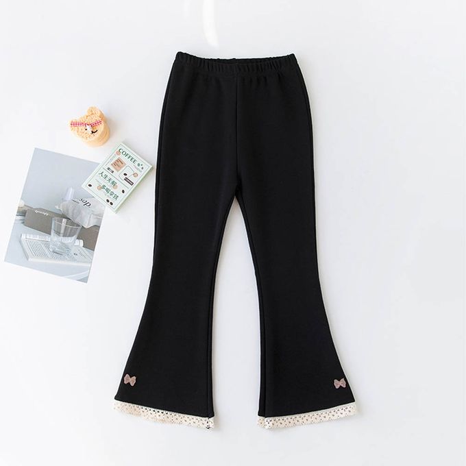 厚棉微喇叭內搭褲-花邊蝴蝶結-黑色