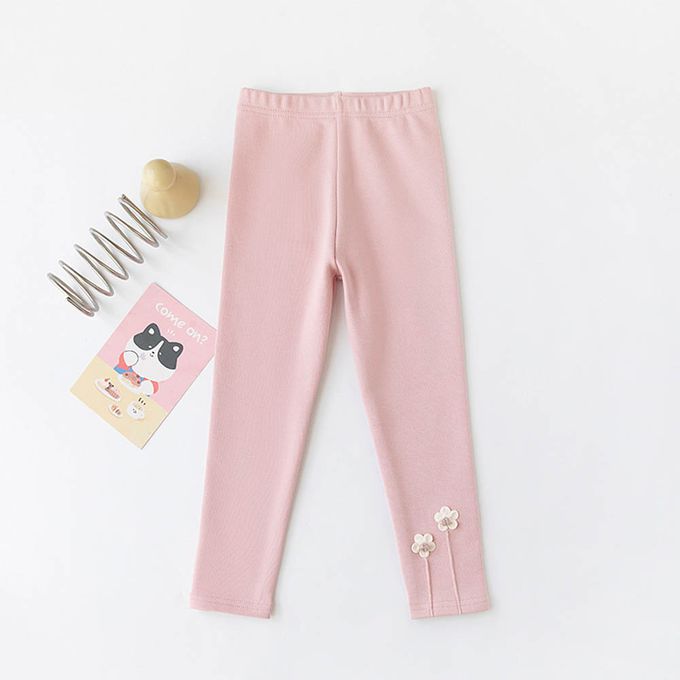 厚棉氣質內搭褲-兩朵小花-粉色