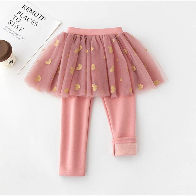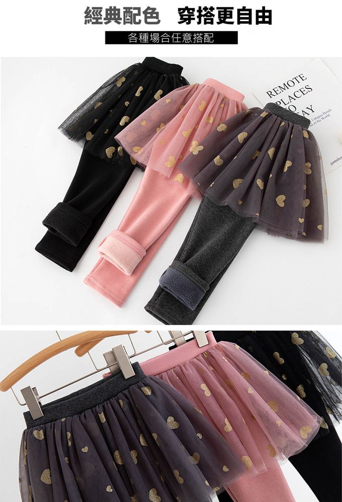 加絨紗裙內搭褲-閃亮愛心-粉色