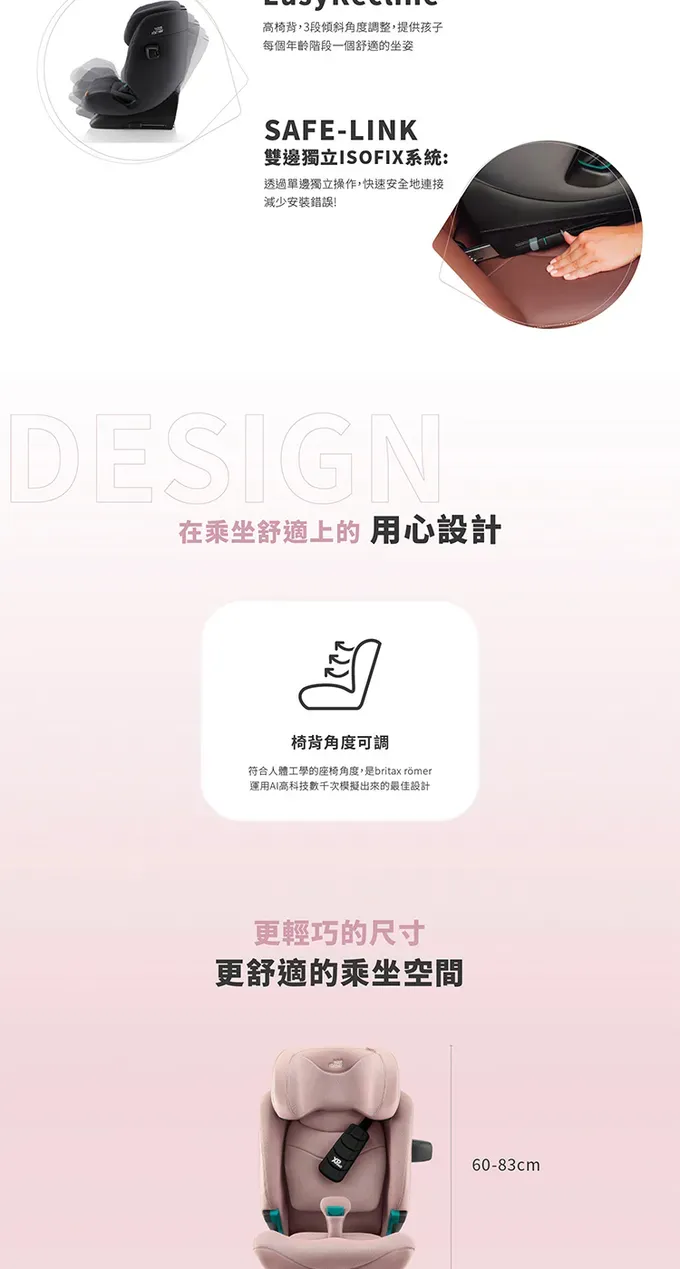 三段式椅背調整,符合 i-Size高規安全標準