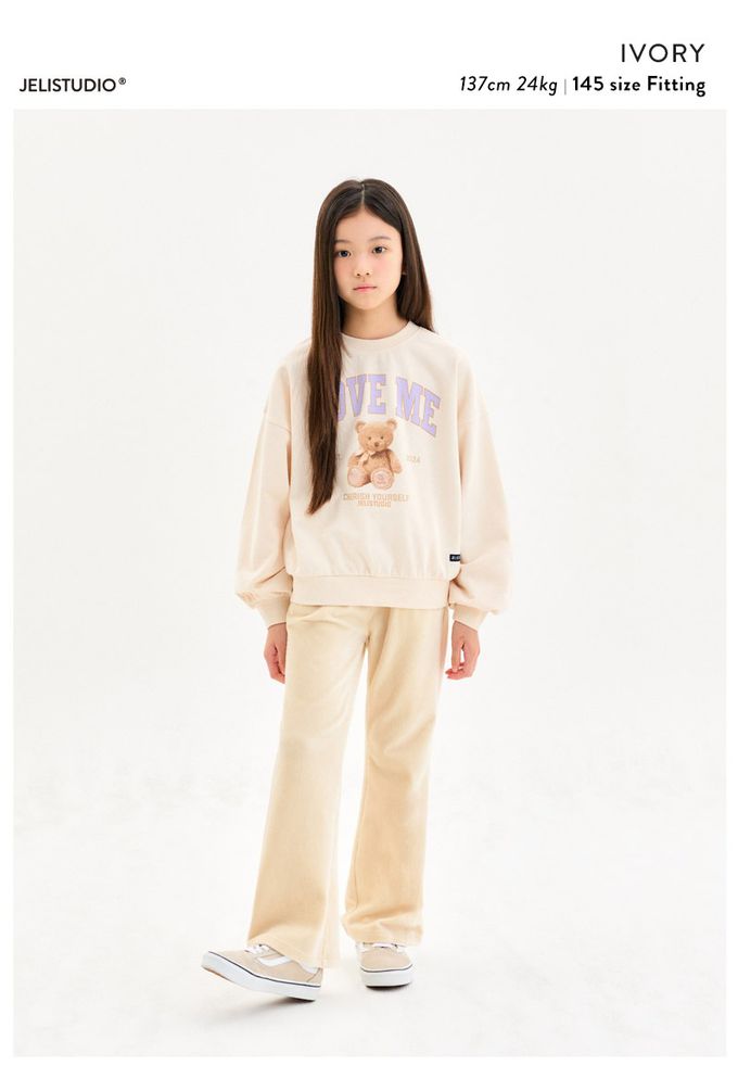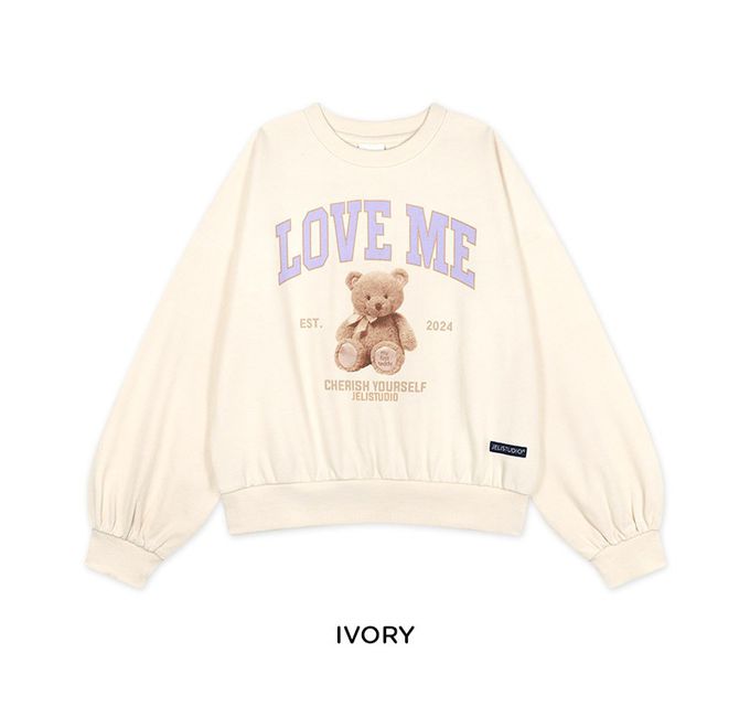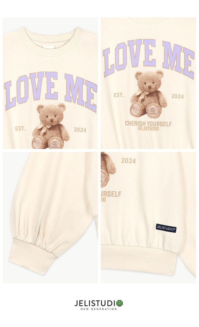 韓國 JELISTUDIO - LOVE ME泰迪熊長袖大學T-奶油米