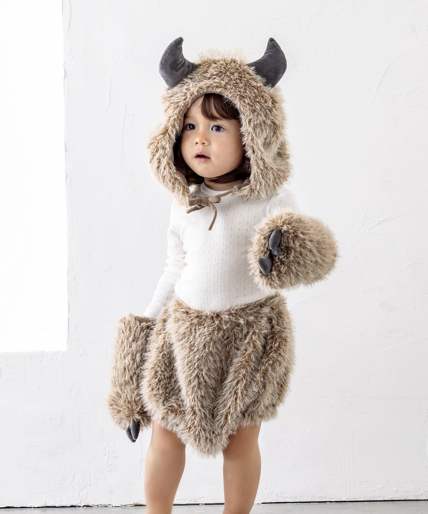 ● 本產品為拍攝用道具,非玩具。請勿用於原本用途以外的場合。● 使用前請先將產品上黏貼的貼紙撕除。● 幼童使用時,請務必在家長的監護下進行。● 若尺寸不合,請勿使用。● 請注意避免勾到遊具、門把、交通工具等,以免發生危險。● 請勿戴著手套奔跑。● 請注意避免幼童將繩帶纏繞於脖子上。● 請勿舔食或放入口中。● 若出現過敏、紅腫、搔癢、起疹等異常情況,請立即停止使用並諮詢專科醫師。● 請以輕壓方式清洗,勿搓揉。● 請勿長時間浸泡。● 可能會有掉色情況,請避免與其他衣物一同清洗。● 清洗後請立即整理形狀並晾乾,並充分乾燥。● 內部填充物亦需徹底乾燥,以免滋生黴菌。● 遇水或摩擦時可能會有染色轉移,請特別注意。● 多次穿著或清洗後,可能會有掉毛、毛亂或填充物外露的情況。請勿硬拉,建議使用剪刀小心修剪。● 請勿強行拉扯配件或零件。● 請避免存放於高溫潮濕環境,建議置於通風良好的地方。● 請勿放置或存放於火源附近。● 請保管於兒童與寵物無法觸及之處。● 因個體差異,尺寸或設計可能略有誤差。● 廢棄時請依各地方政府的垃圾分類規定處理。