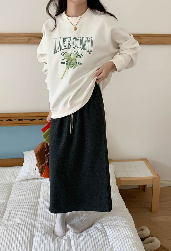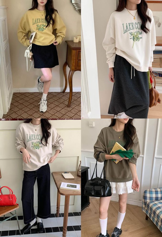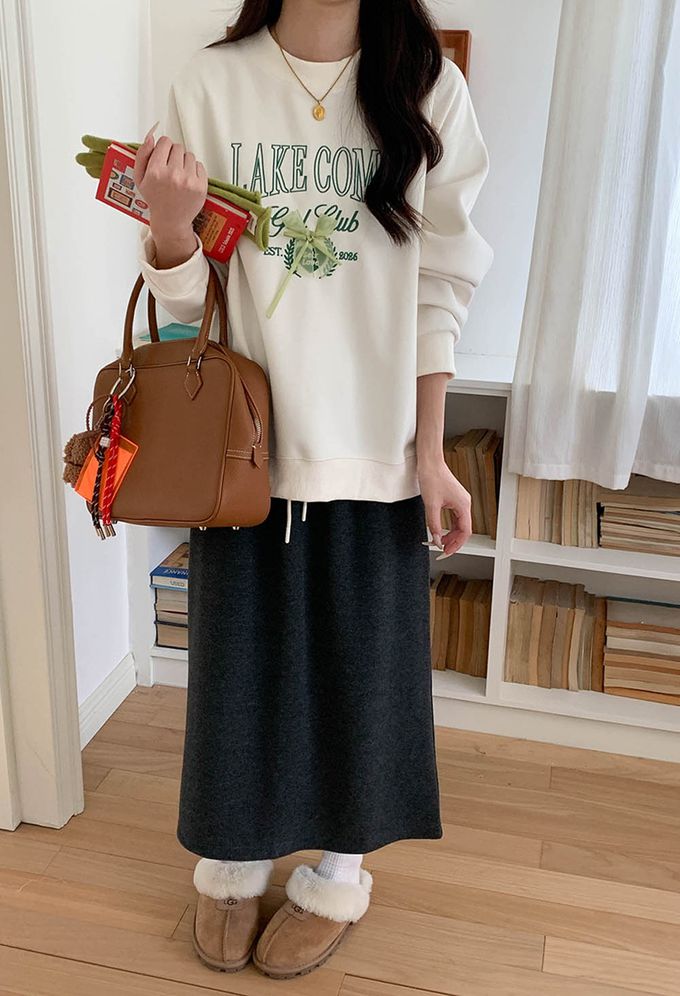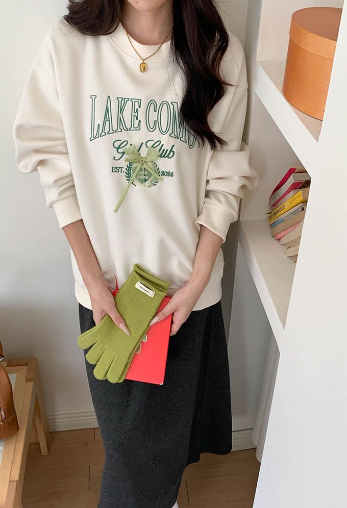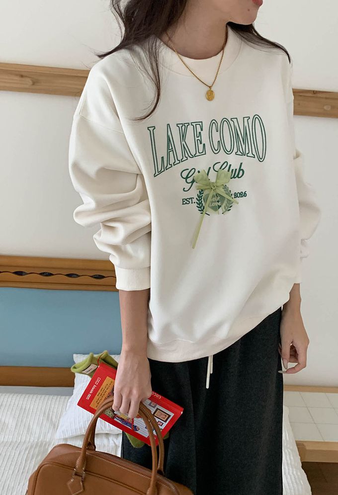 長袖大學T-刺繡字母蝴蝶結-杏色 (F)