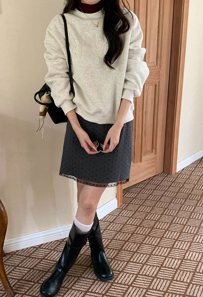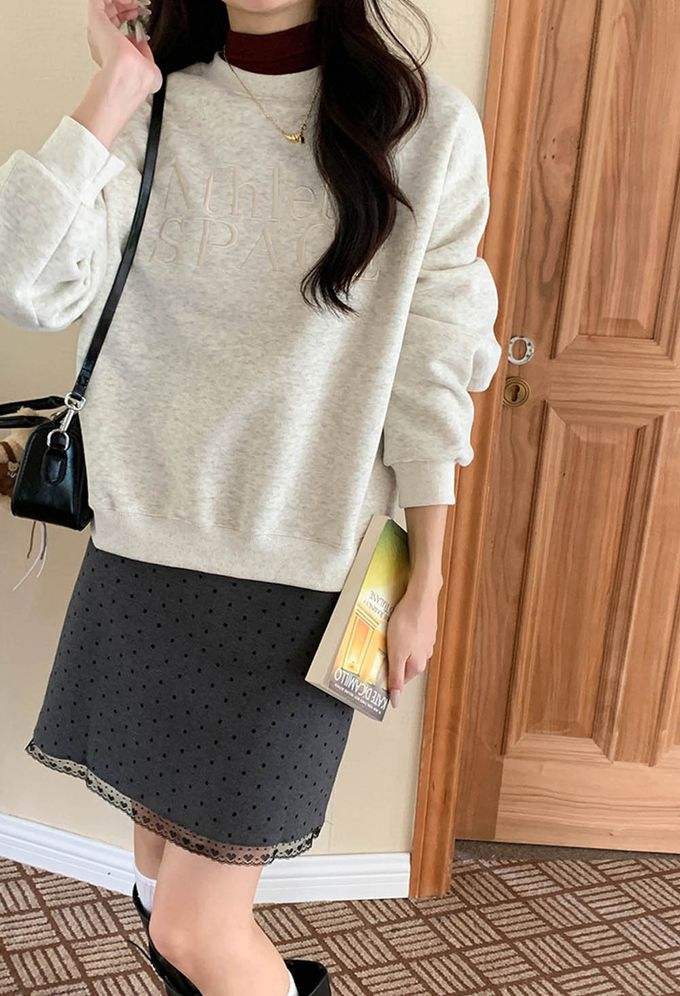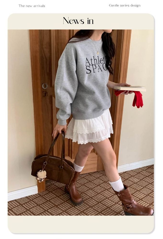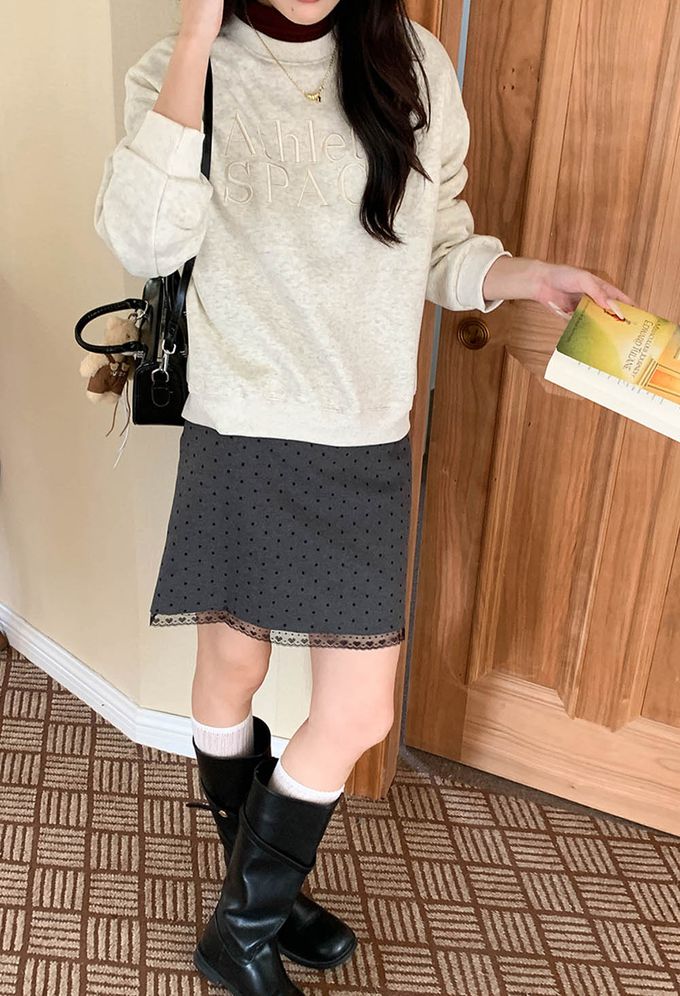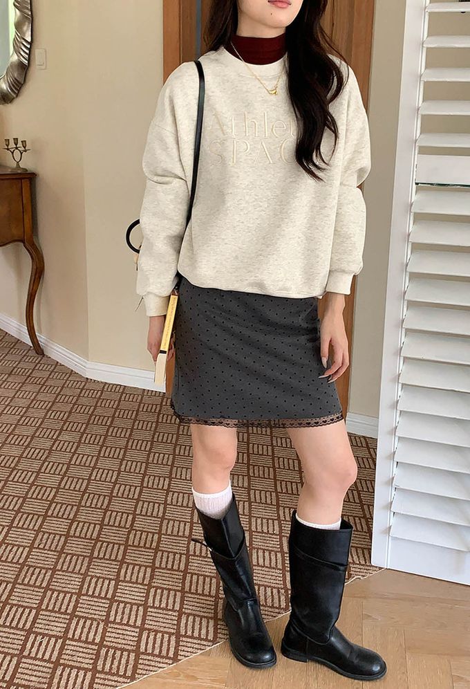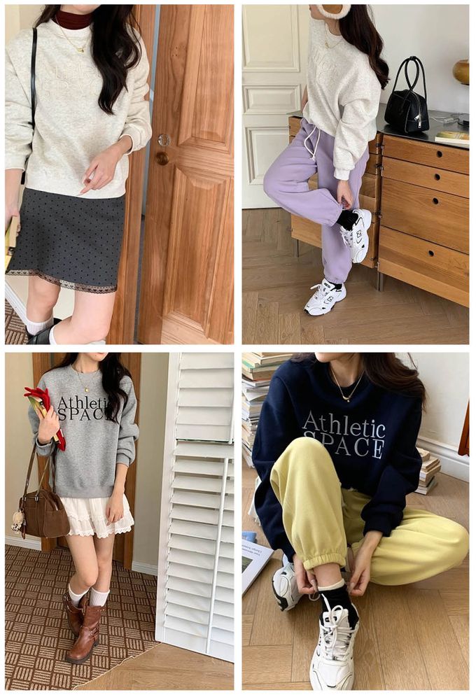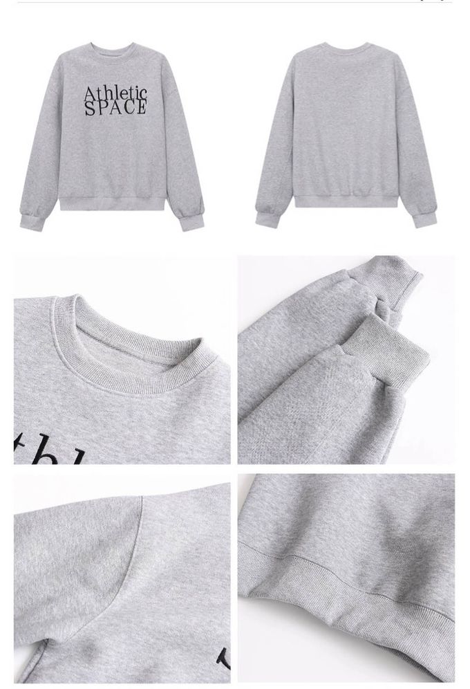 長袖大學T-簡約刺繡字母-麻白 (F)