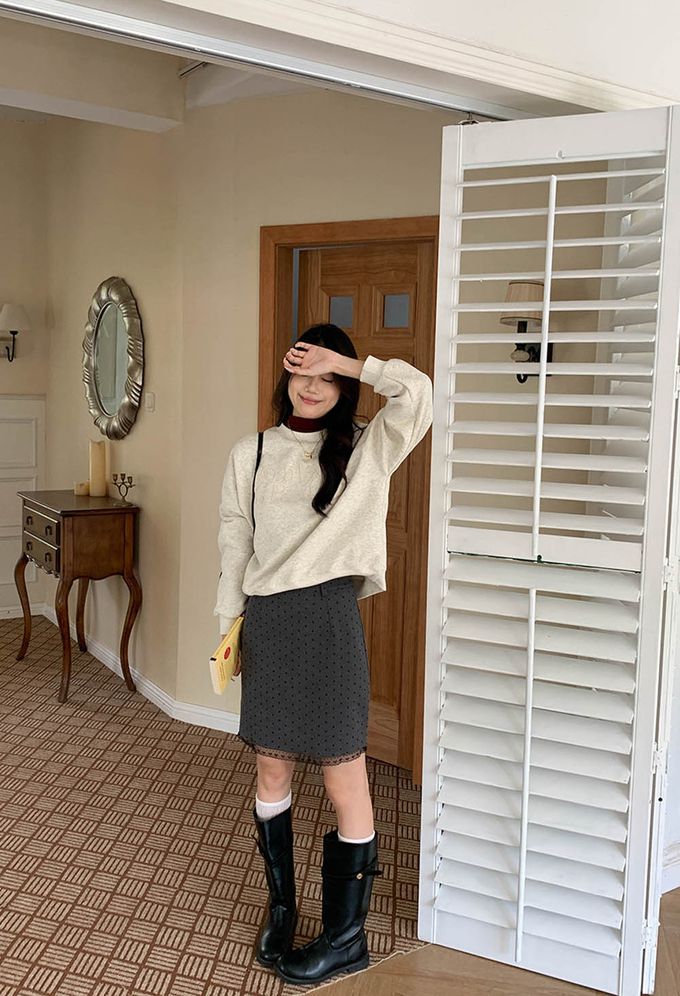 3th Morning - 長袖大學T-貝殼刺繡-灰色 (F)