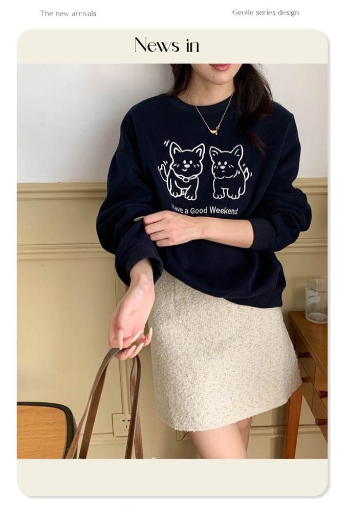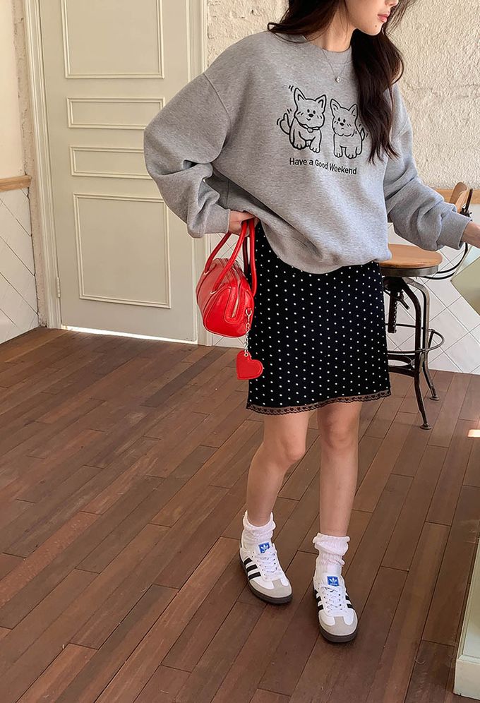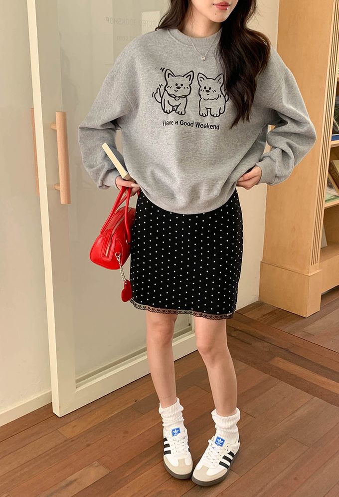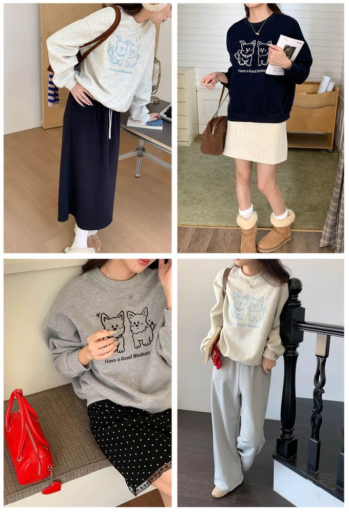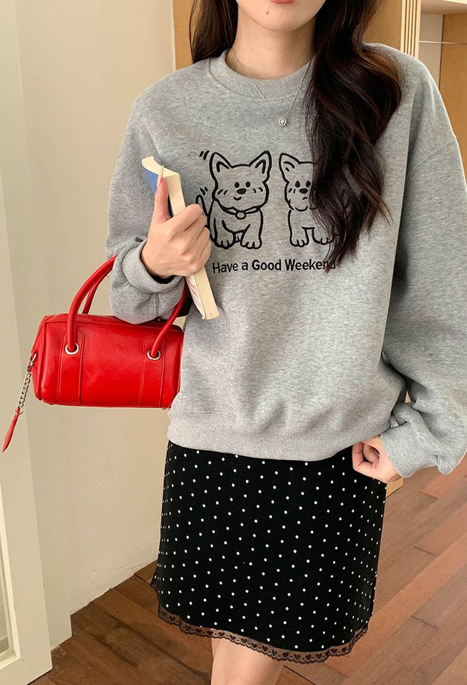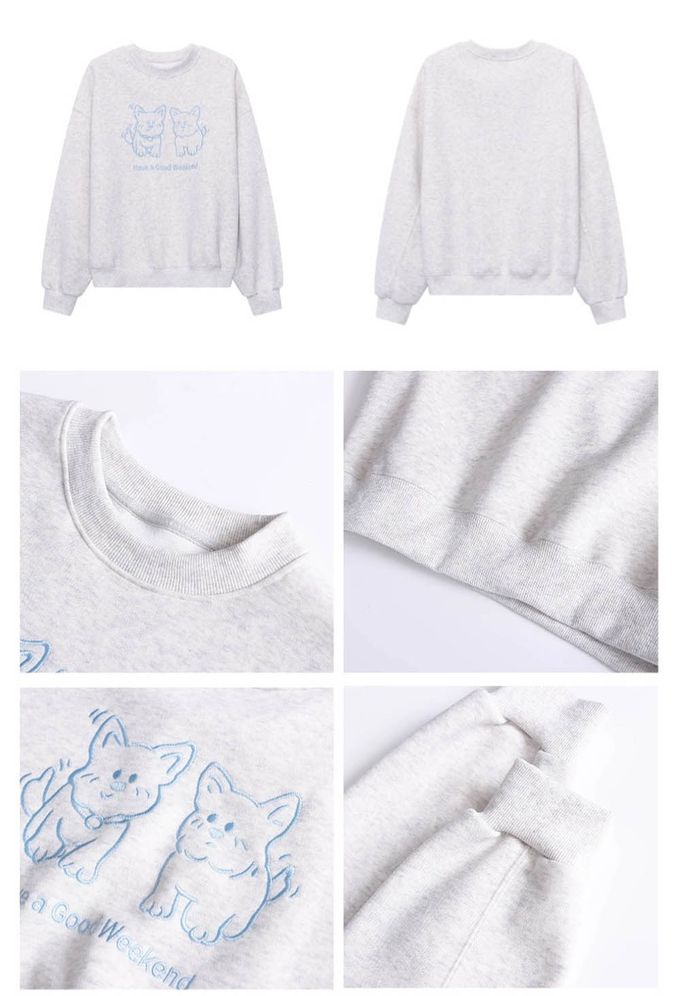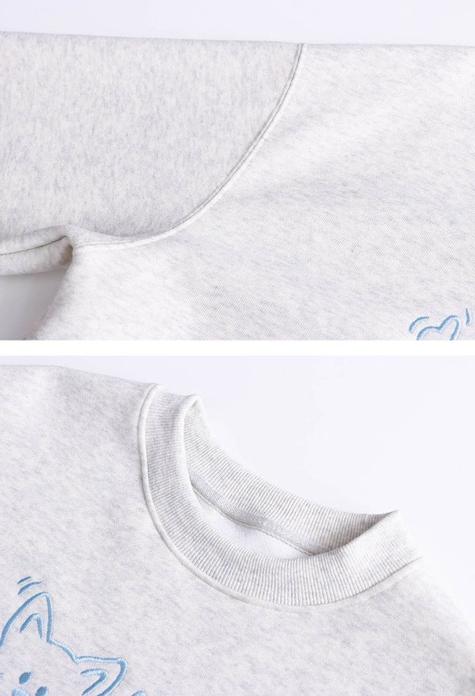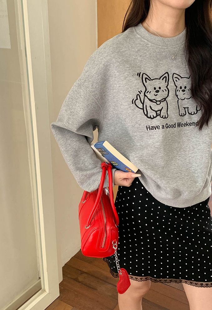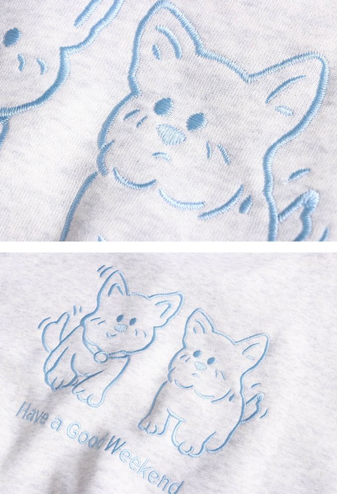 長袖大學T-俏皮小狗刺繡-灰色 (F)