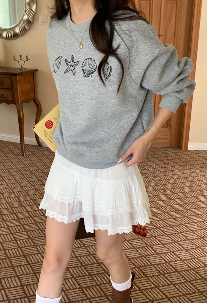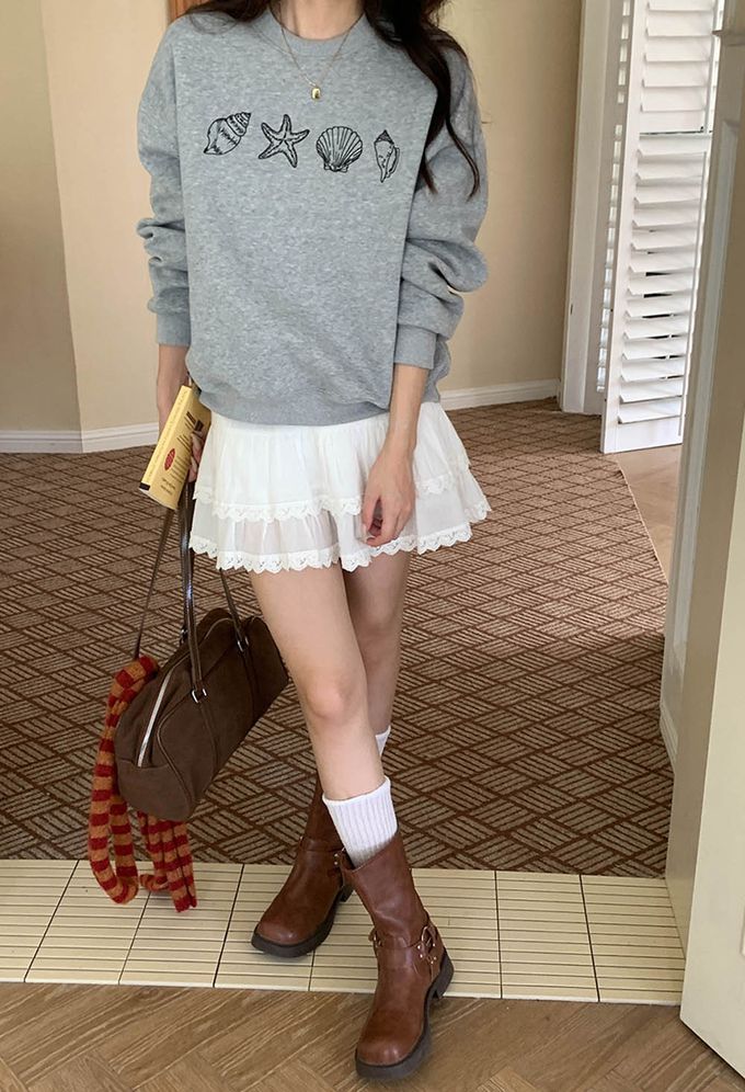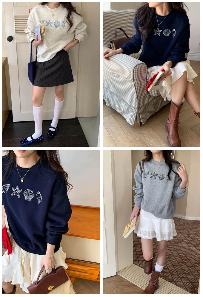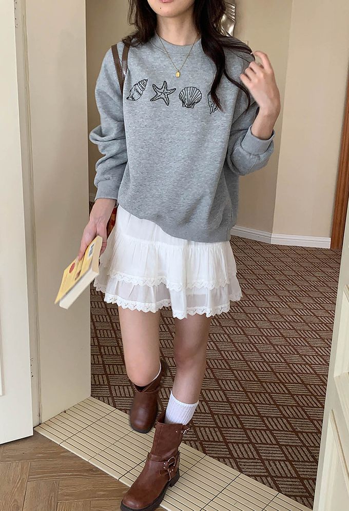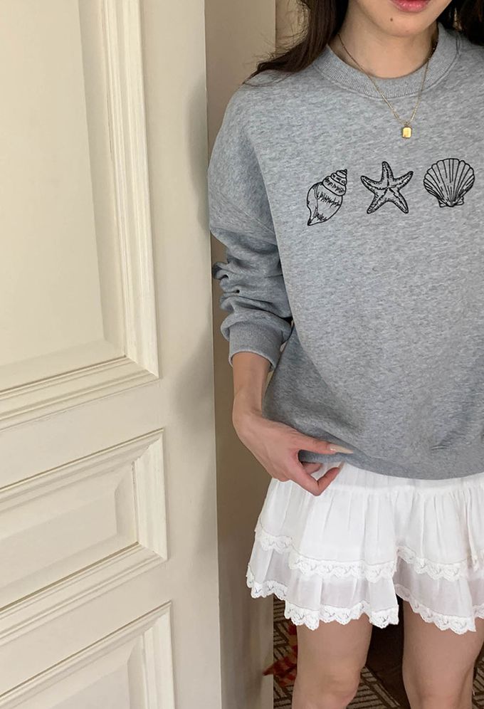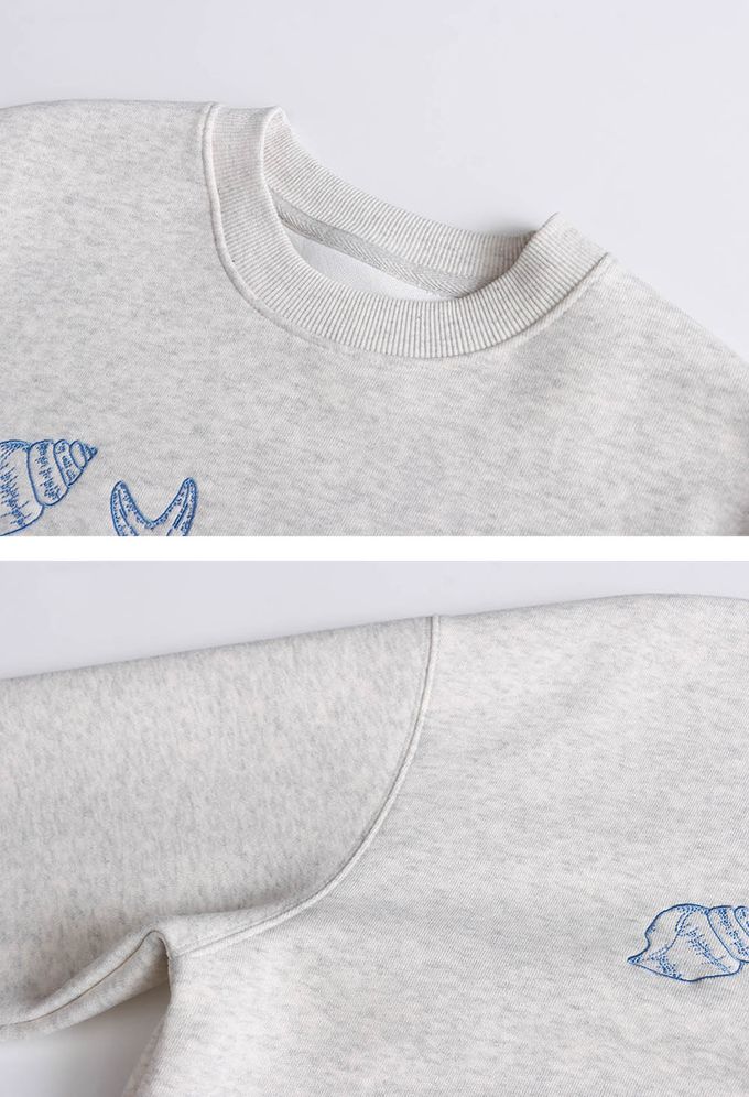 3th Morning - 長袖大學T-貝殼刺繡-灰色 (F)